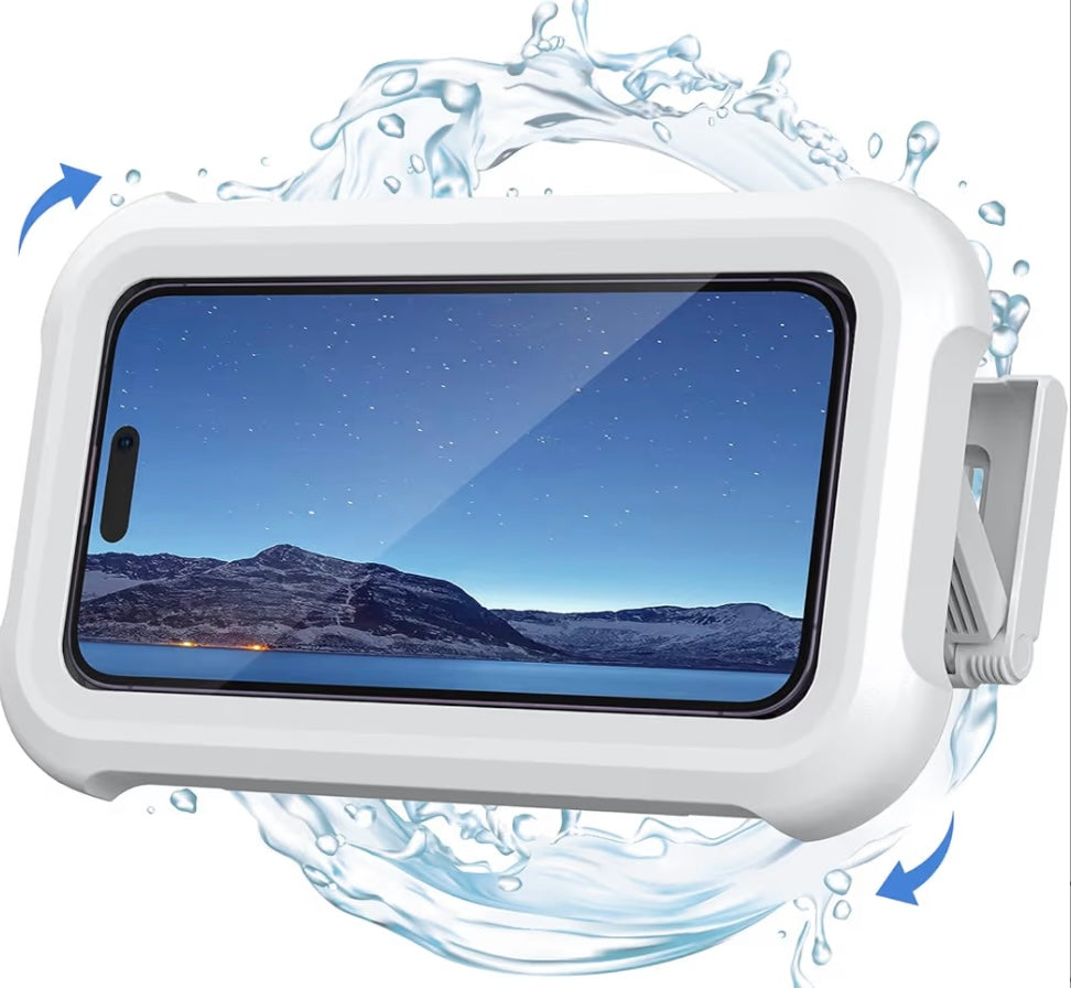 100% Impermeable y Anti-Niebla】Hecho de materiales ABS de alta calidad y contó con un círculo interno a prueba de agua y el diseño de cierre, este soporte para celular de ducha es impermeable a las salpicaduras de la ducha y el vapor de agua, ayudando a disfrutar viendo Youtube, Netflix, Tiktok, escuchar música mientras se ducha. ❗Nota: Por favor, no sumerja completamente el soporte de la caja del teléfono en el agua.