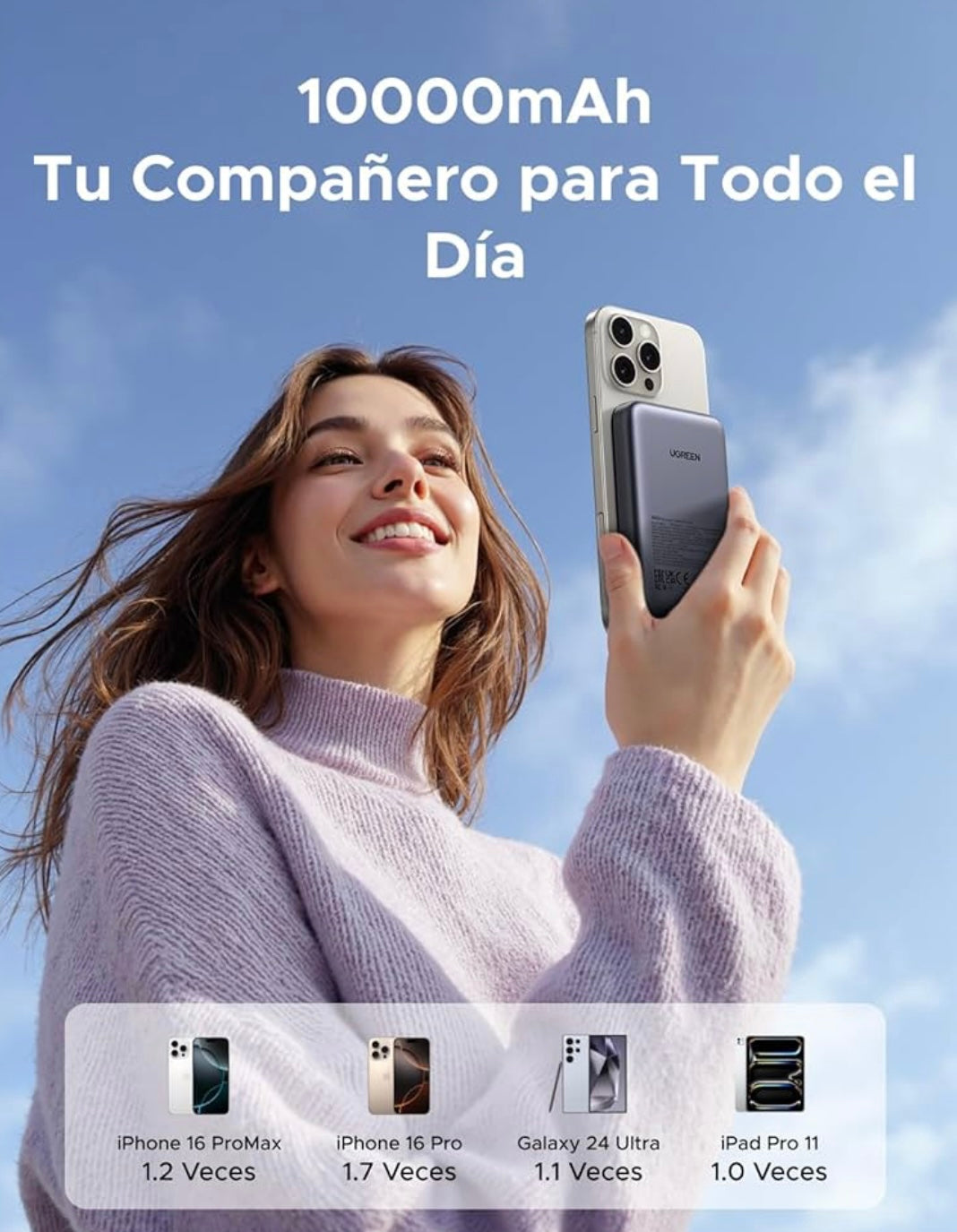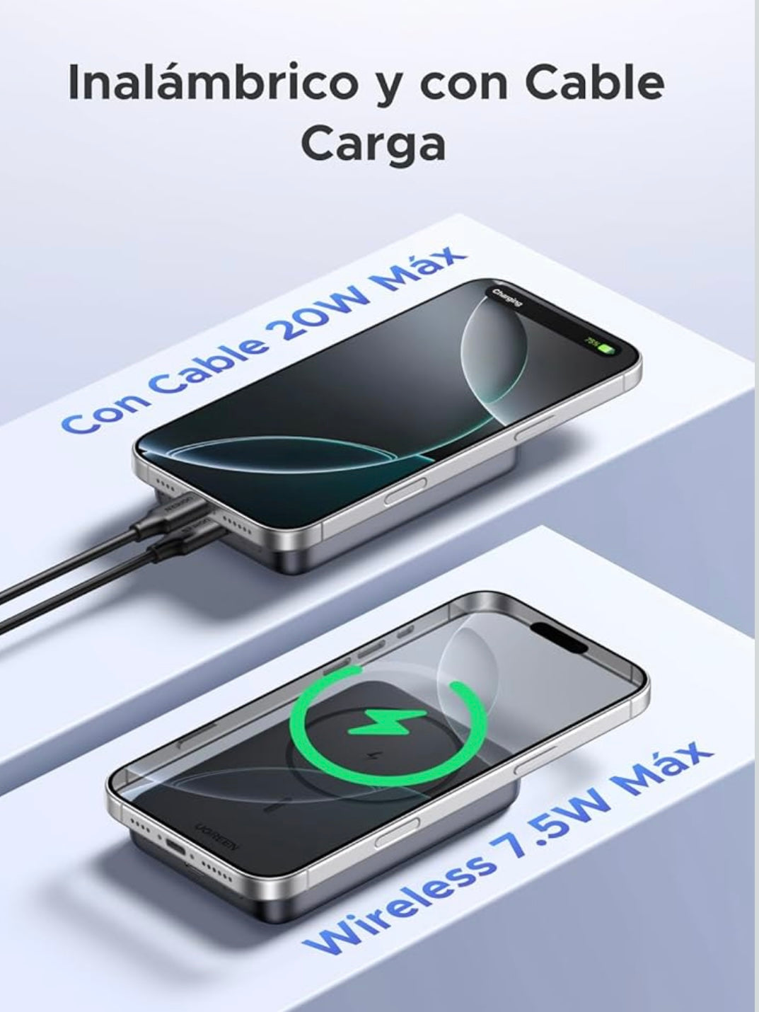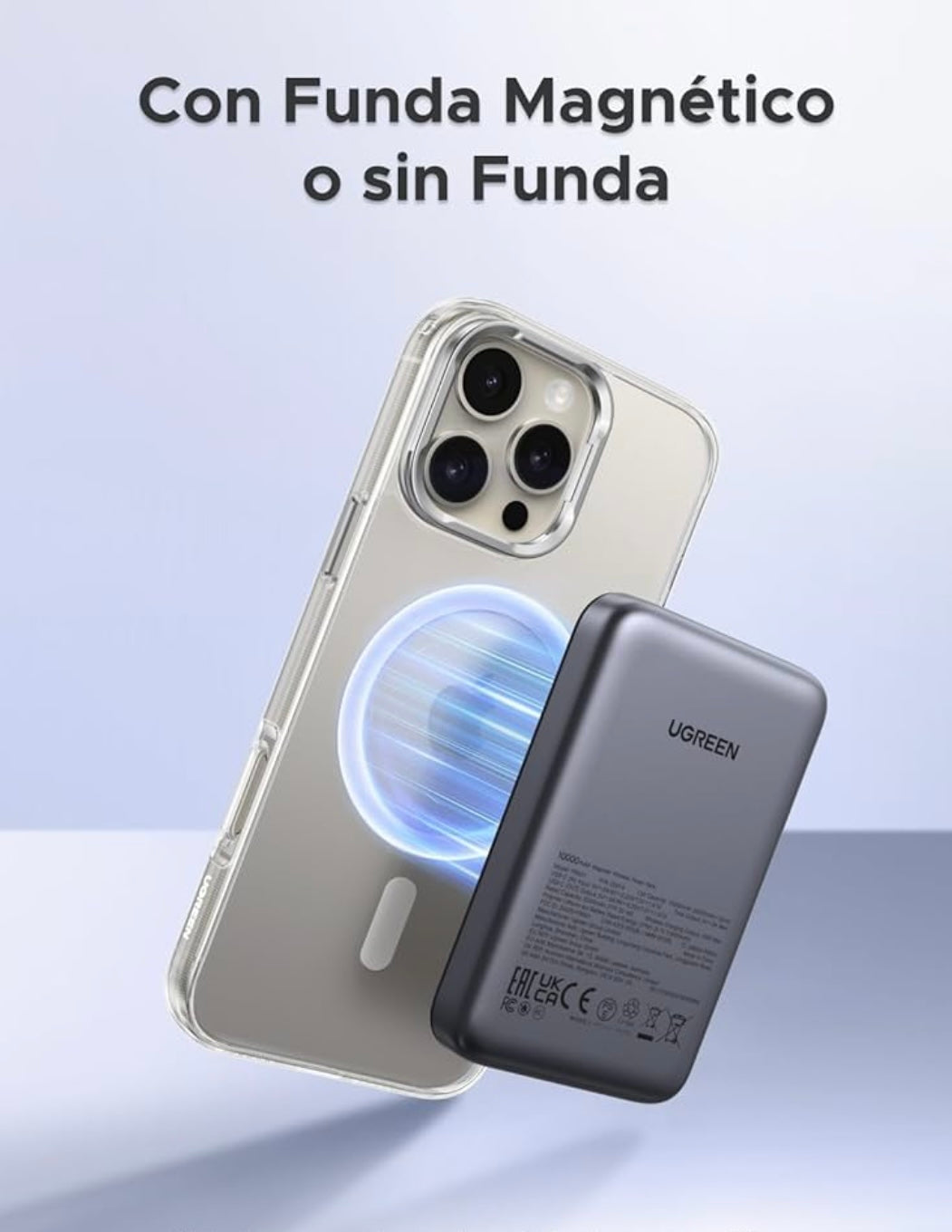 - Carga Magnética: ¡Bateria portatil carga rapida está aquí! Con Qi 15W de alta potencia, puede cargar de forma inalámbrica los teléfonos inteligentes Android compatibles con Qi y 7,5W para los modelos iPhone de la serie 17-12. Los imanes ultrafuertes (aprox 10N) sujetan el dispositivo de forma segura, lo que le permite sostener el smartphone y la power bank iphone con una sola mano, ¡para que no interfiera con el smartphone mientras se carga