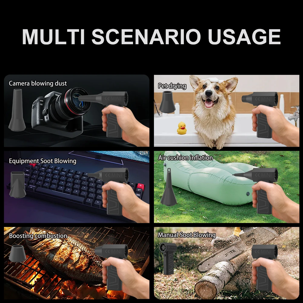- Wide Usage:Air cushion blowing and suction, computer equipment cleaning, industrial dust blowing, charcoal burning to support combustion, car blowing and snow blowing, film studio shooting and wind making, drying pets, and many other uses.